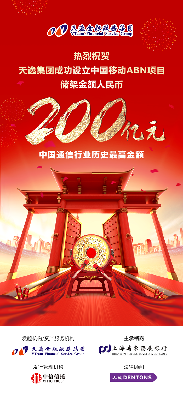 • 2021年,成功设立中国移动ABN项目200亿元人民币储架,为中国通信行业历史最高金额