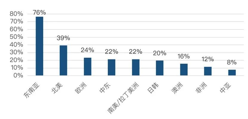 当前,制造业仍是当前出海企业的主力军,占比40%。而出海目的地的选择,也显得高度趋同:超过76%的企业聚焦东南亚(越南,泰国、印尼、马来...)市场。