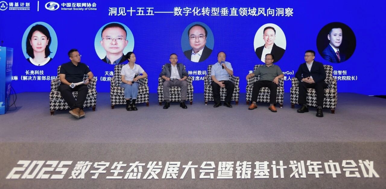 天逸集团政府事务部总经理袁总参加圆桌论坛环节,信通院向天逸集团成功入选“铸基计划”双榜单,并荣获“国际先进科技成果”表示祝贺。袁总介绍,天逸集团二十五年来始终深耕金融科技领域,以科技赋能实体产业,为众多行业提供一站式数智金融服务解决方案,持续推动产业链协同与数字化转型。