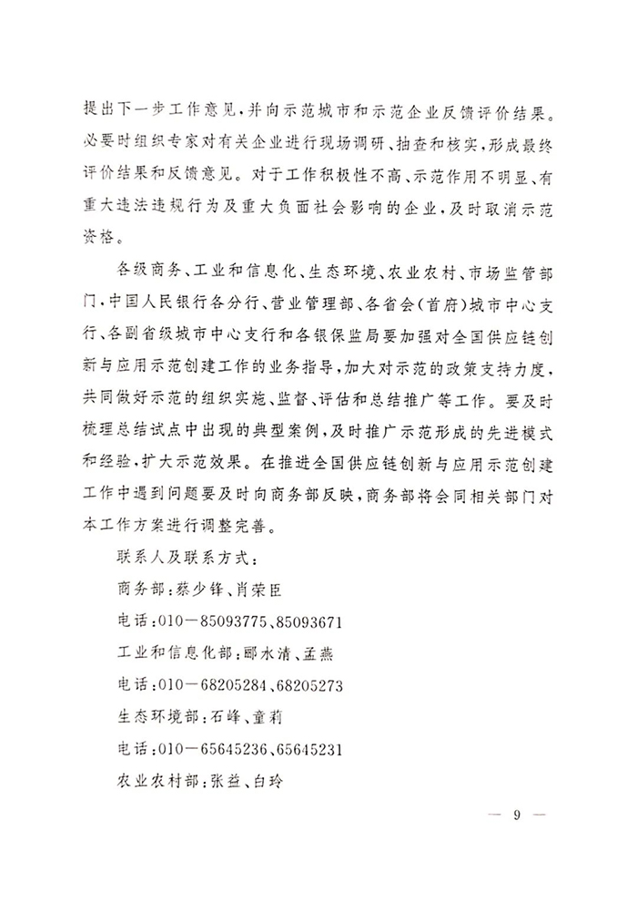 (注:2021年3月30日,商务部、工业和信息化部、中国物流与采购联合会印发《商务部等8单位关于开展全国供应链创新与应用示范创建工作的通知》)