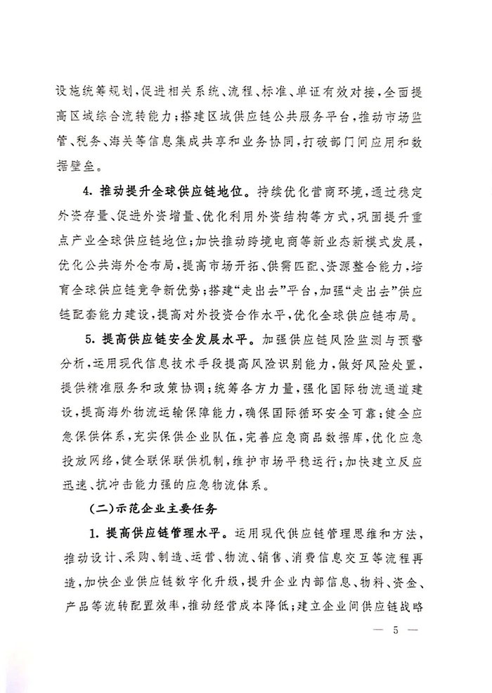 有关省级商务主管部门要会同相关单位,积极指导督促本地示范城市和示范企业扎实推进示范创建工作,充分发挥示范引领作用。示范城市要进一步完善供应链治理体系建设,出台支持供应链创新与应用的政策措施,营造良好外部环境,结合本地产业特色和发展实际,建立健全各环节、各要素高效协同的产业链供应链生态,提高供应链安全稳定和自主可控水平,助力经济转型和高质量发展;示范企业要进一步提高供应链管理水平,加快供应链数字化智能化升级,加强自主创新和技术攻关,建设上下游互联互通、资源整合能力强的供应链协同平台,形成大中小企业专业化分工协作的网络体系,全面提升企业供应链数字化、智能化、协同化、绿色化和国际化水平。