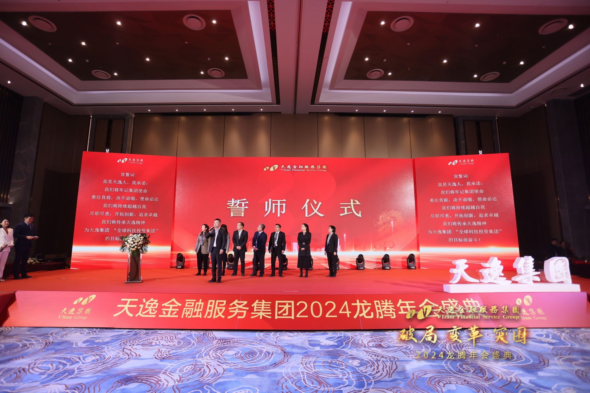 与会现场,全体天逸人一同庄严宣誓,在“全球科技投资集团”的指引下,明确责任担当,以行动为导向,牢记战斗使命,勇往直前、开拓创新、追求卓越。