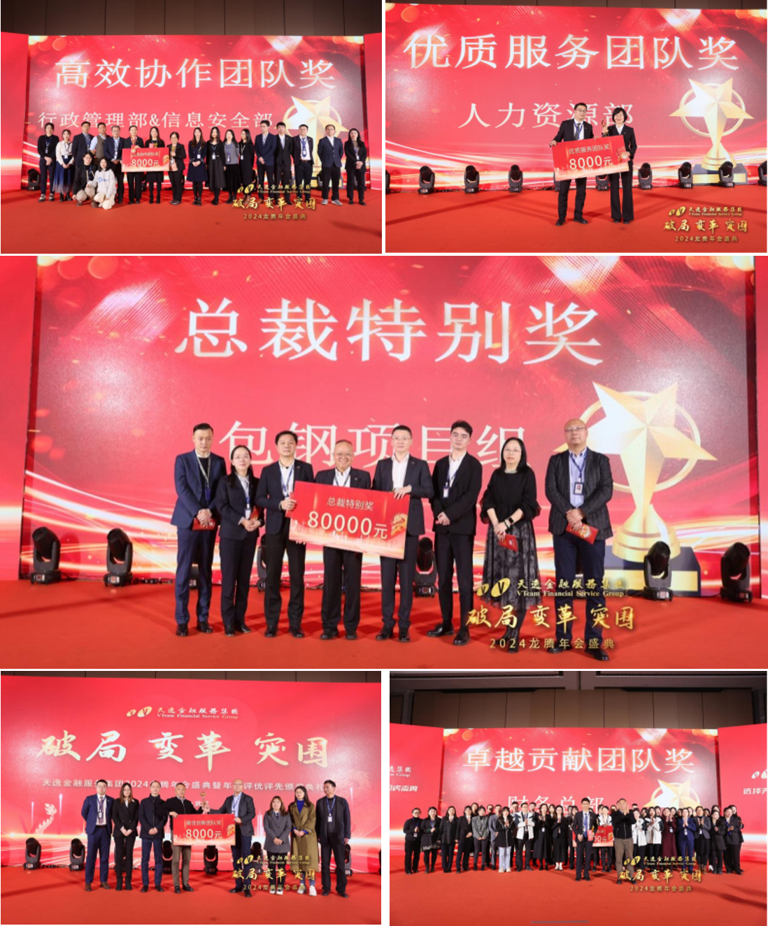 在过去的一年里,天逸人戮力同心,风雨共担,奋勇向前。其中,涌现出一批优秀的团队、员工代表,他们敢想敢干,为实现公司业务持续发展注入新动能。本次年会彰显榜样的力量,为2023年度评优评先团队及个人颁发荣誉奖项,向奋斗者致敬。