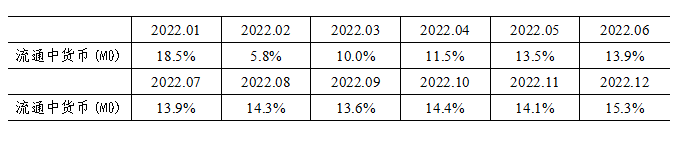 注4:自2022年12月起,“流通中货币(M0)”含流通中数字人民币。12月末流通中数字人民币余额为136.1亿元。修订后,2022年各月末M1、M2增速无明显变化。修订后M0增速如下: